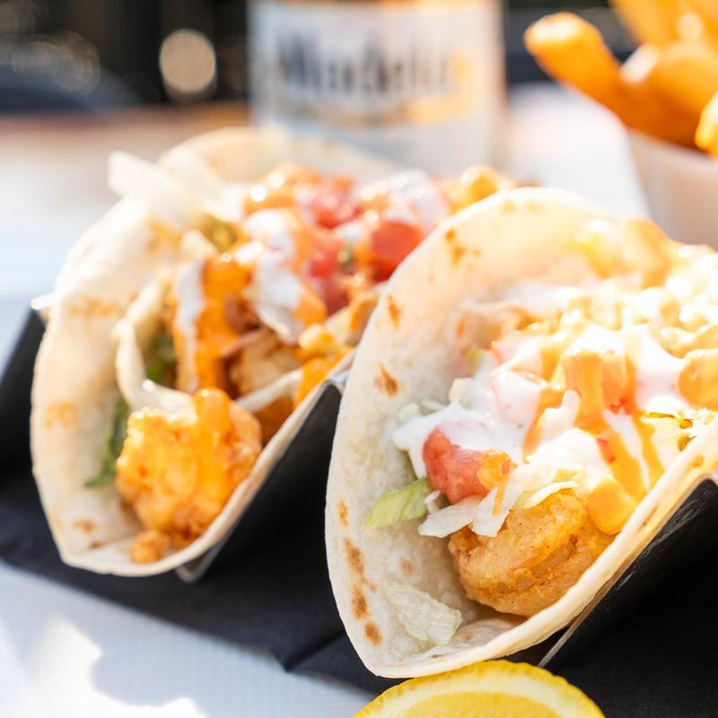 Bangin Shrimp Tacos Our popular appetizer intwo soft shelltacos topped with lettuce, tomato, ranch and our signature sauce